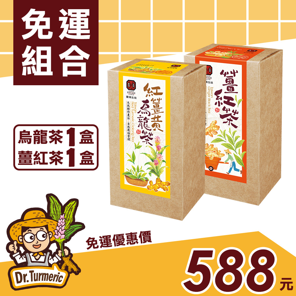 【紅薑黃烏龍茶】以台灣高山烏龍茶與自然農法紅薑黃結合,100%純天然,符合國家食品衛生標準,安心保證!【薑紅茶】為興大農學博士創意研發,將聞名全球的阿薩姆紅茶與台灣竹薑結合,風味獨特迷人,薑味香濃100%純天然,符合國家食品衛生標準,安心保證!幫助維持健康、調整體質、促進新陳代謝的最佳茶飲。