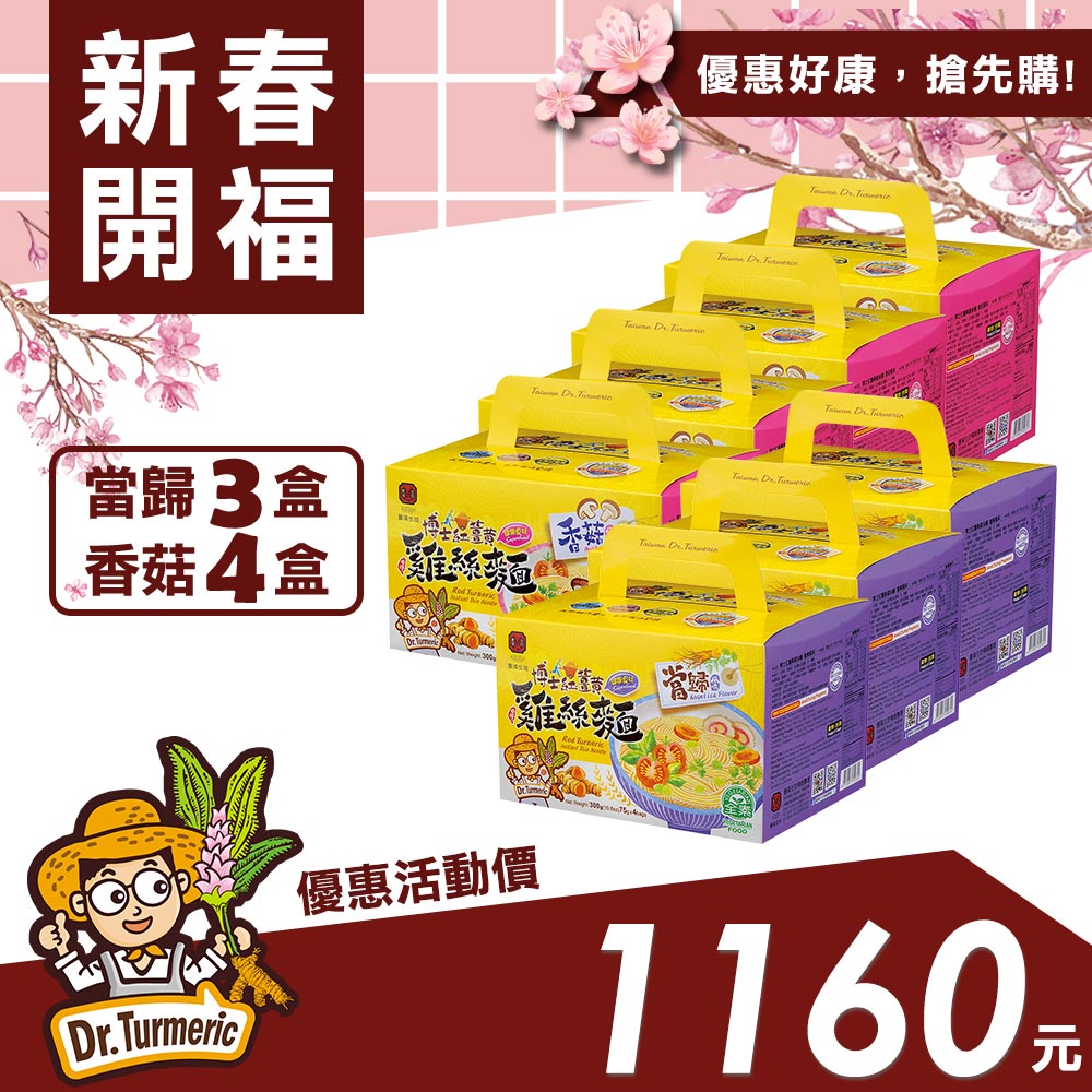 【新春開福】博士紅薑黃雞絲麵(當歸風味×三盒、香菇風味×四盒)