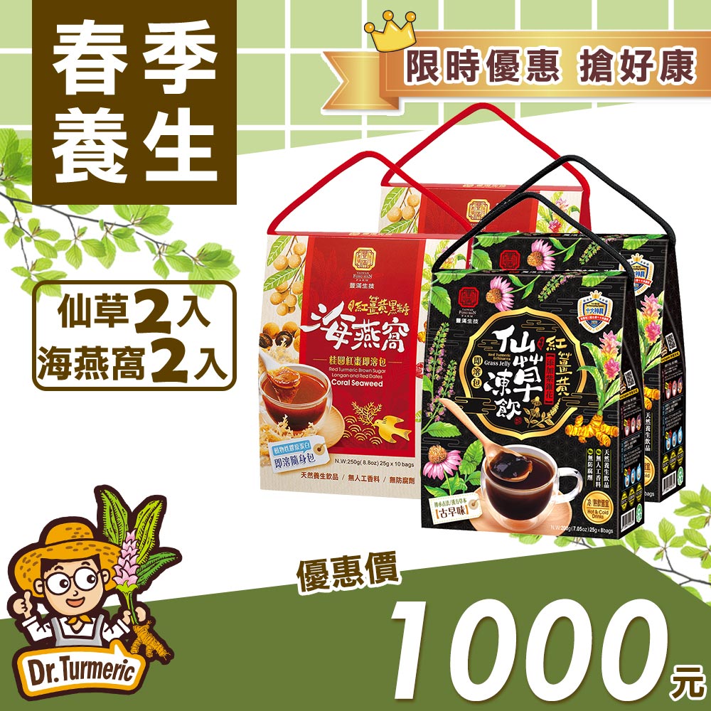 【春季養生】紅薑黃黑糖海燕窩二盒+紅薑黃紫錐仙草凍飲二盒