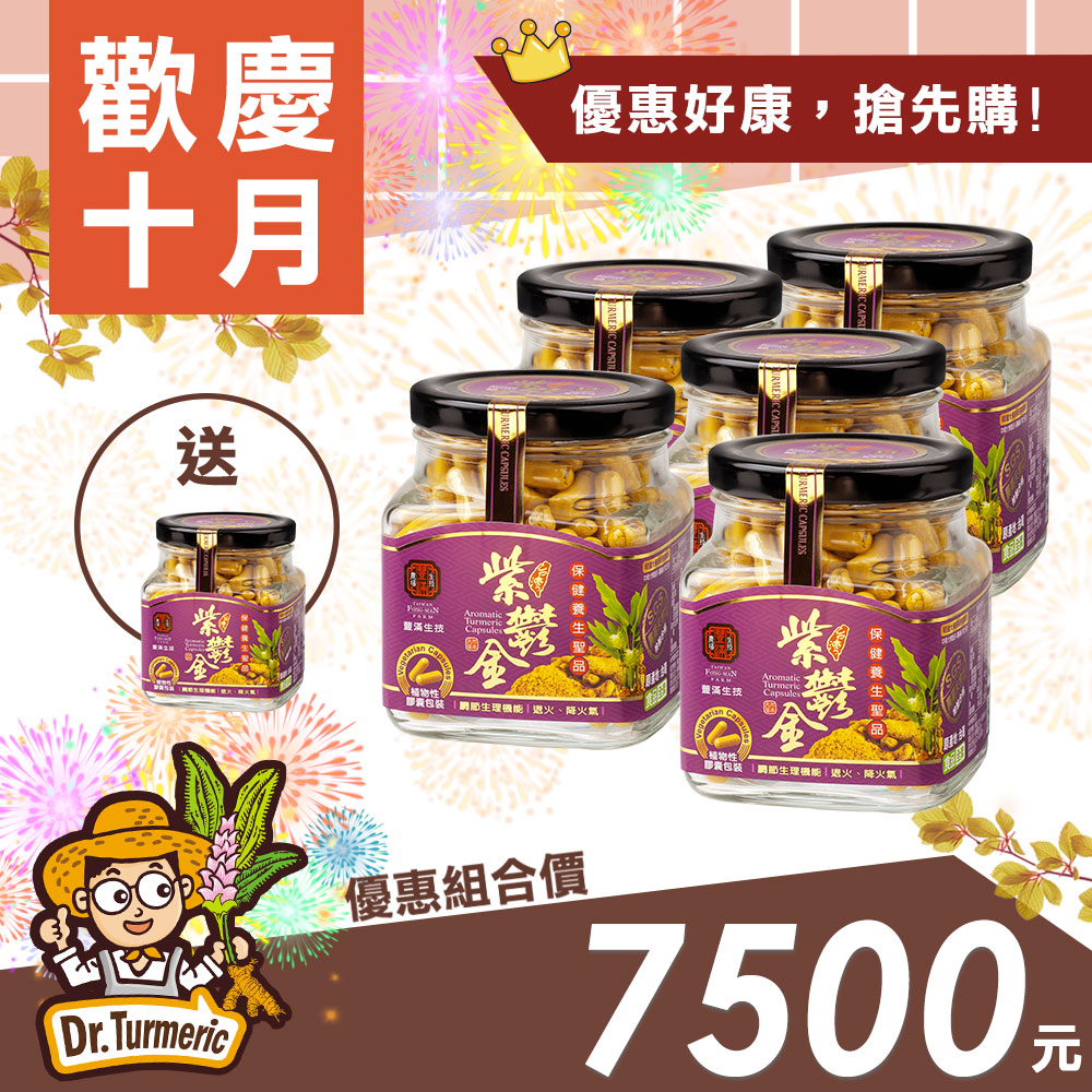 【歡慶十月】超值優惠【買五送一】紫鬱金薑黃粉膠囊