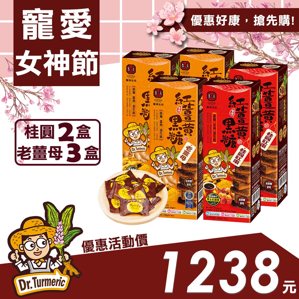【竉愛女神】紅薑黃黑糖-老薑母(三盒)、桂圓紅棗(二盒)