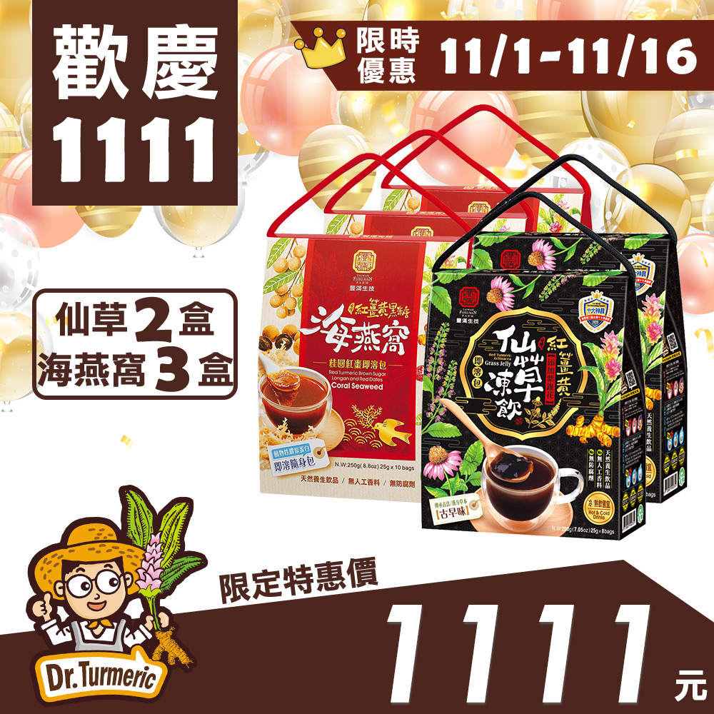 【雙11慶典】紅薑黃黑糖海燕窩三盒+紅薑黃紫錐仙草凍飲二盒