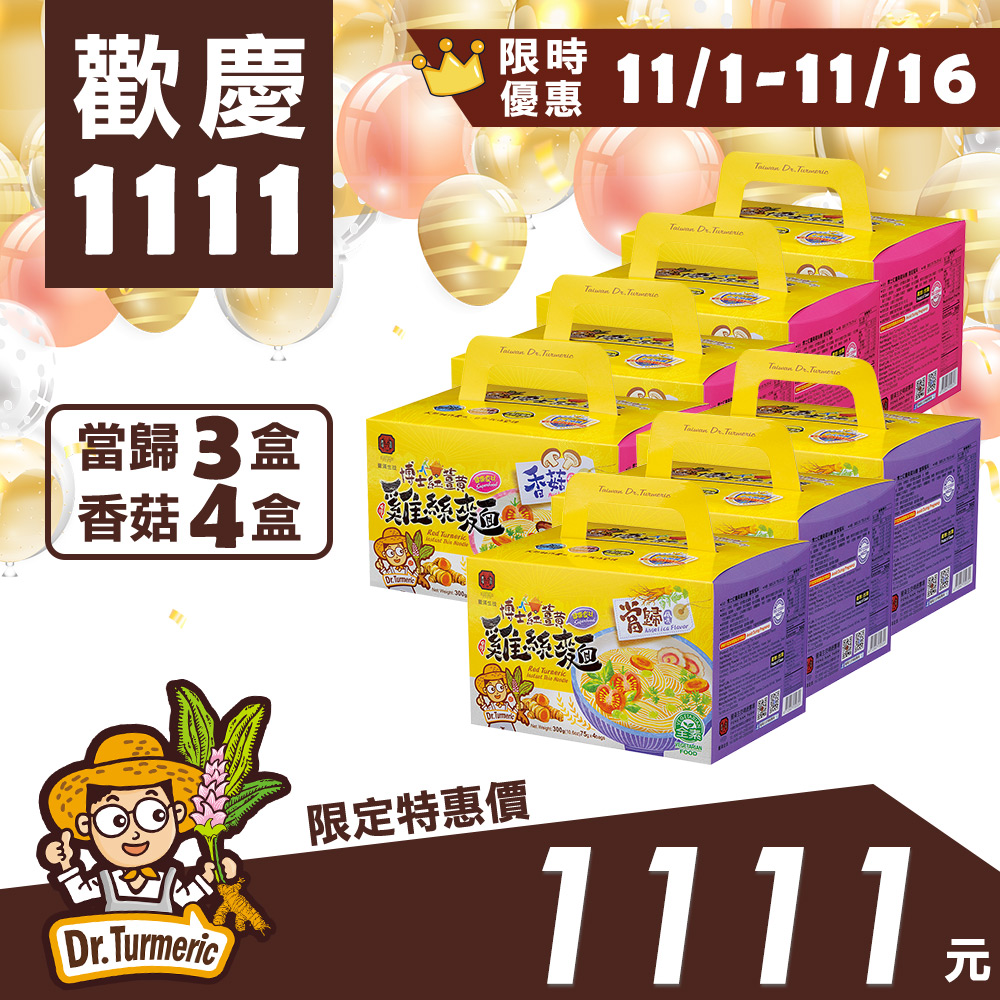 【雙11慶典】博士紅薑黃雞絲麵(當歸風味×三盒、香菇風味×四盒)