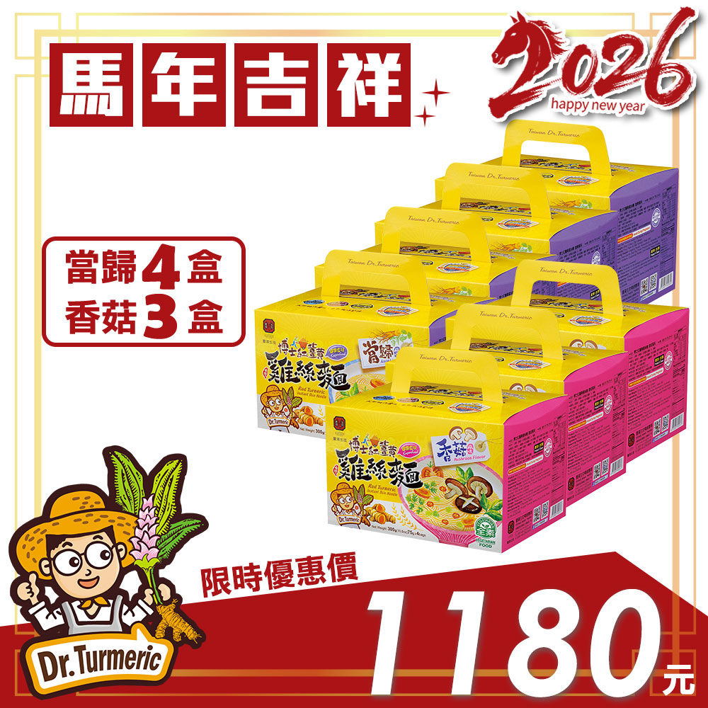 【馬年吉祥】博士紅薑黃雞絲麵(香菇風味×三盒、當歸風味×四盒)