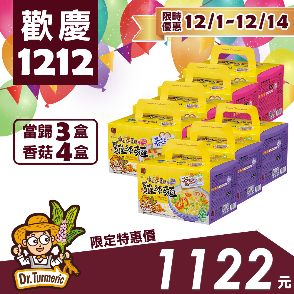 【歡慶1212】博士紅薑黃雞絲麵(當歸風味×三盒、香菇風味×四盒)