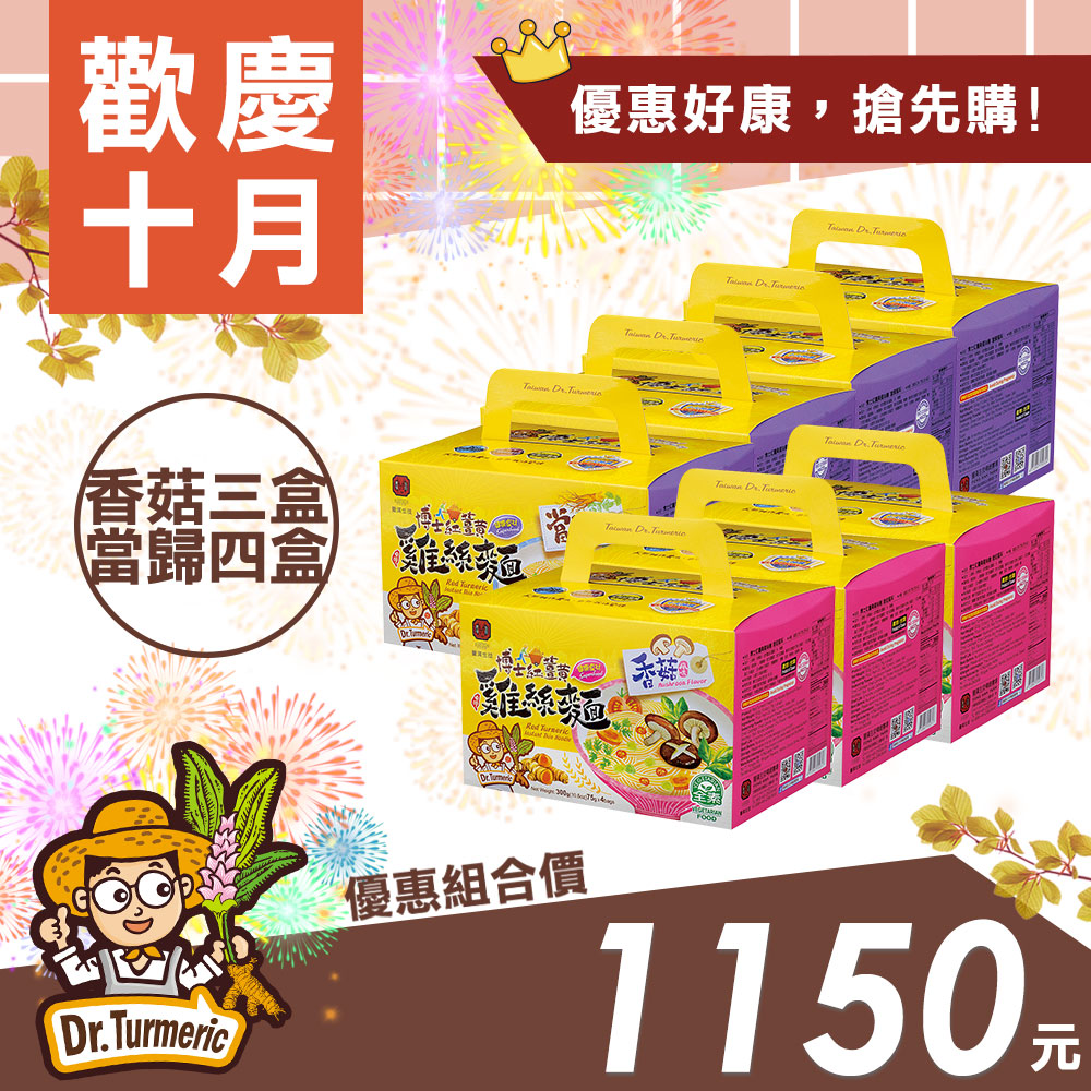 【歡慶十月】博士紅薑黃雞絲麵(香菇風味×三盒、當歸風味×四盒)