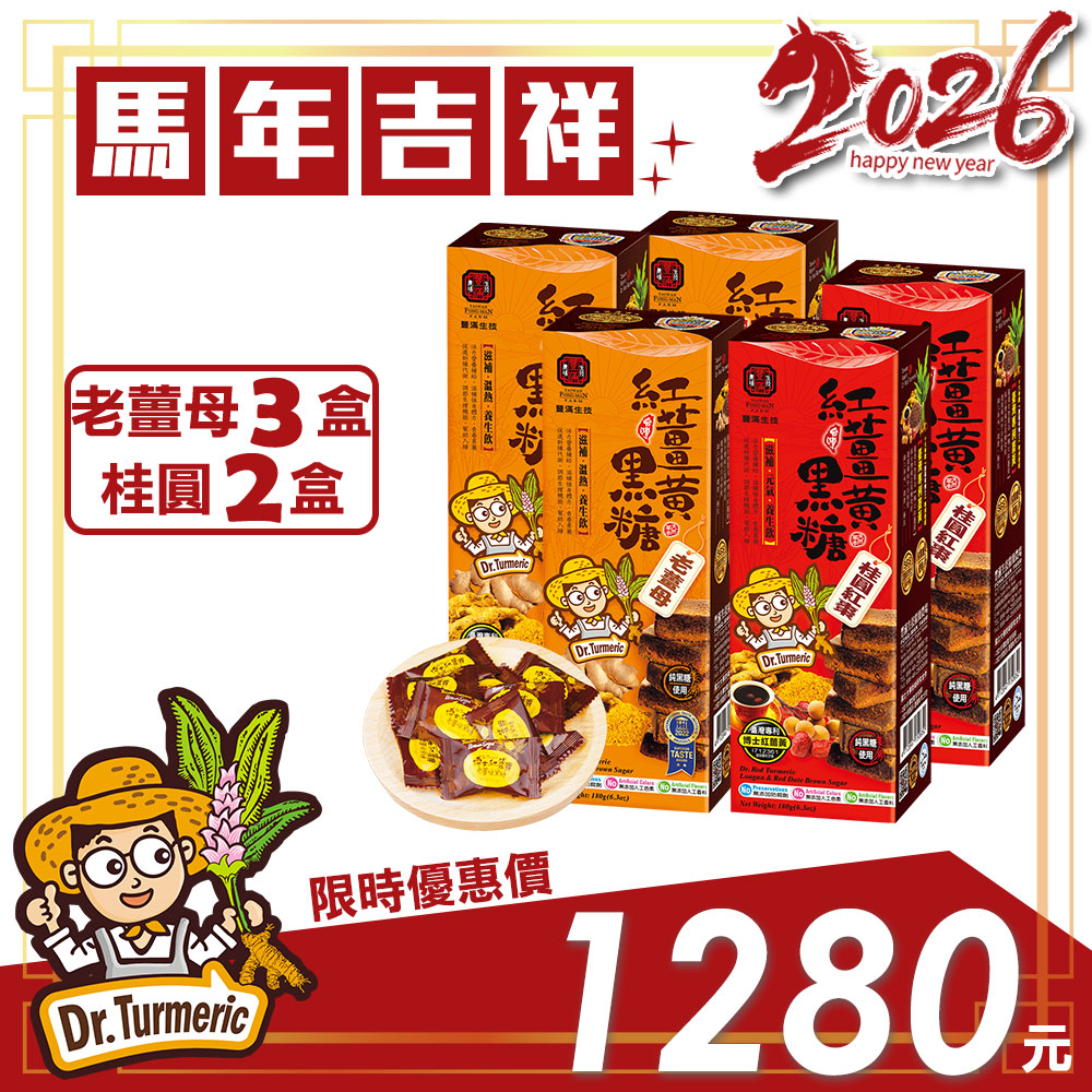 【馬年吉祥】紅薑黃黑糖-老薑母(三盒)、桂圓紅棗(二盒)