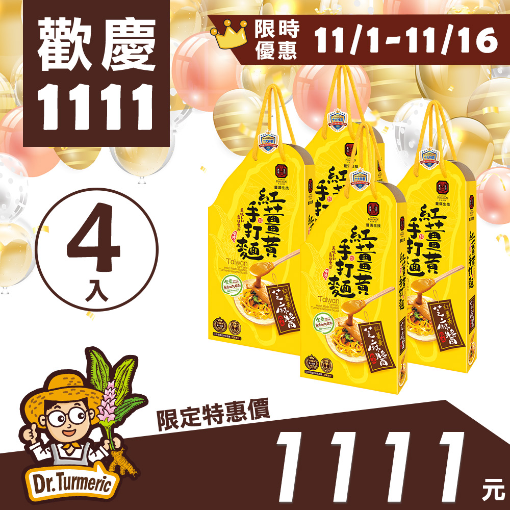 【雙11慶典】紅薑黃手打麵-台灣造型送禮款 (四盒入)