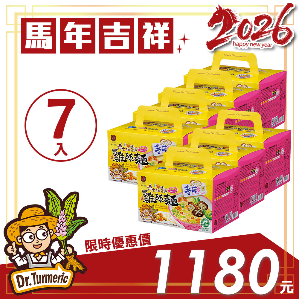 【馬年吉祥】博士紅薑黃雞絲麵(香菇風味)七盒入