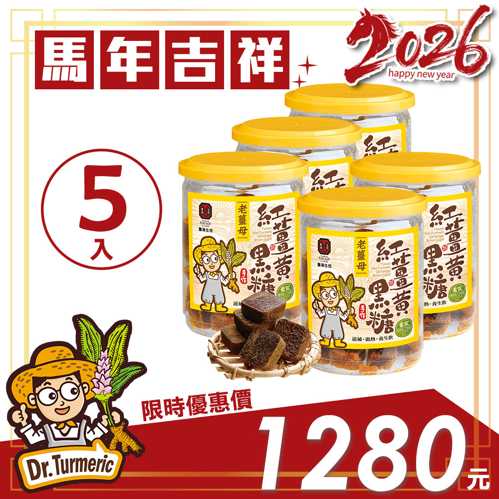 【馬年吉祥】紅薑黃黑糖-老薑母 (五入組)