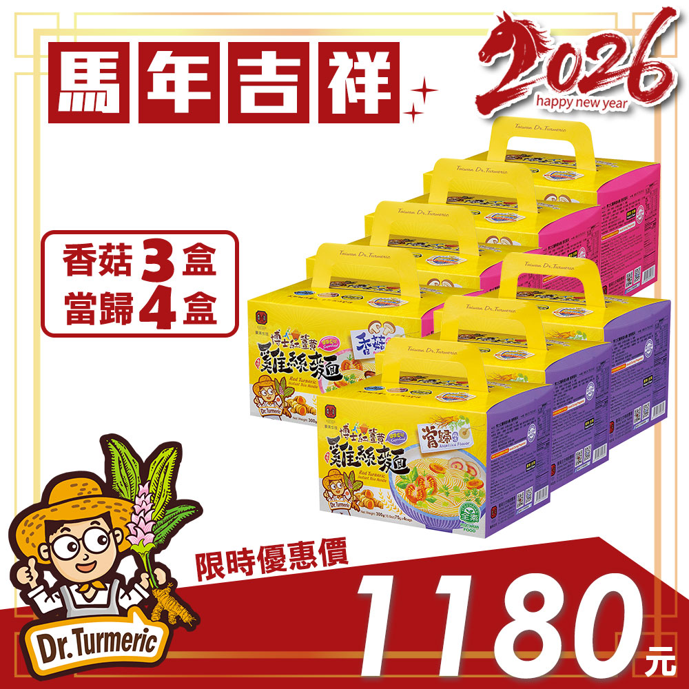 【馬年吉祥】博士紅薑黃雞絲麵(當歸風味×三盒、香菇風味×四盒)