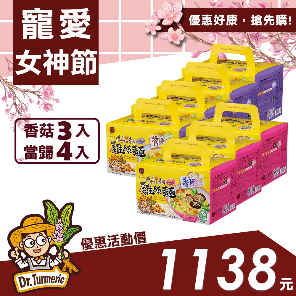 【竉愛女神】博士紅薑黃雞絲麵(香菇風味×三盒、當歸風味×四盒)