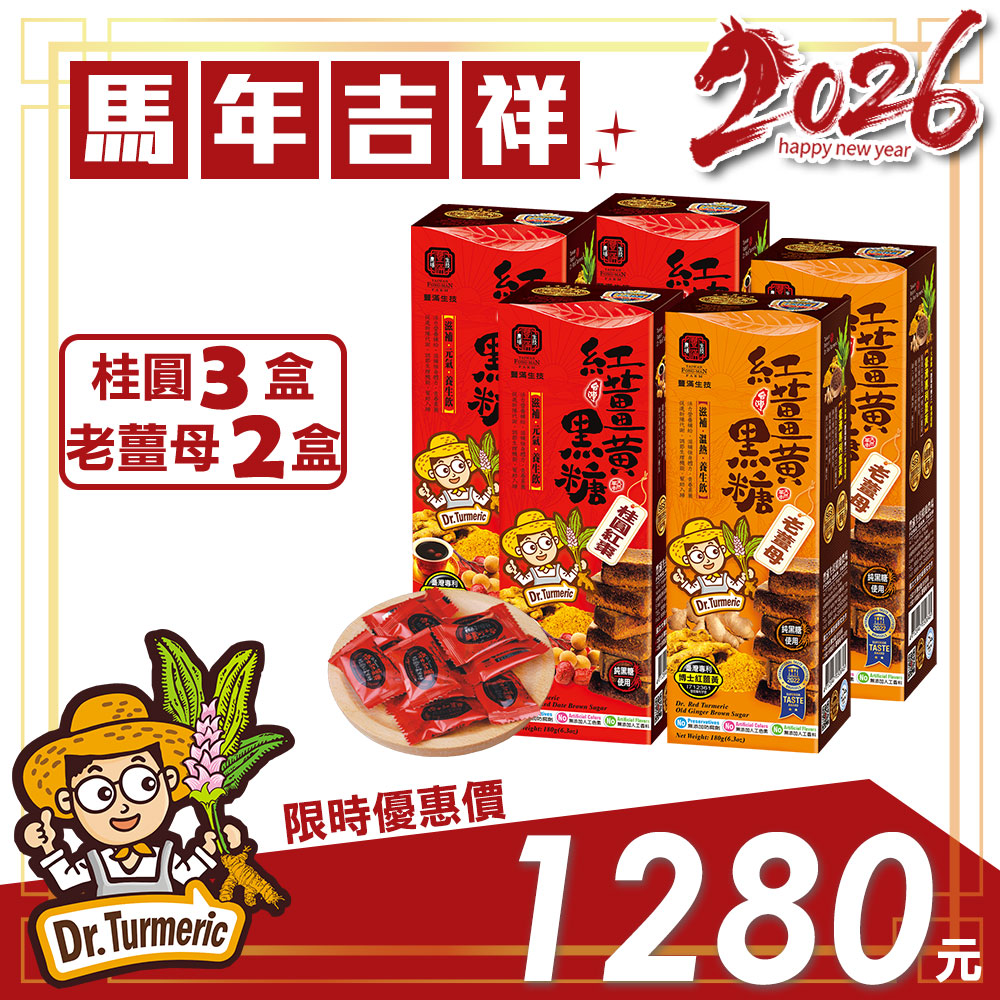 【馬年吉祥】紅薑黃黑糖-桂圓紅棗(三盒)、老薑母(二盒)