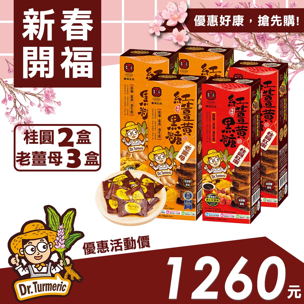 【新春開福】紅薑黃黑糖-老薑母(三盒)、桂圓紅棗(二盒)