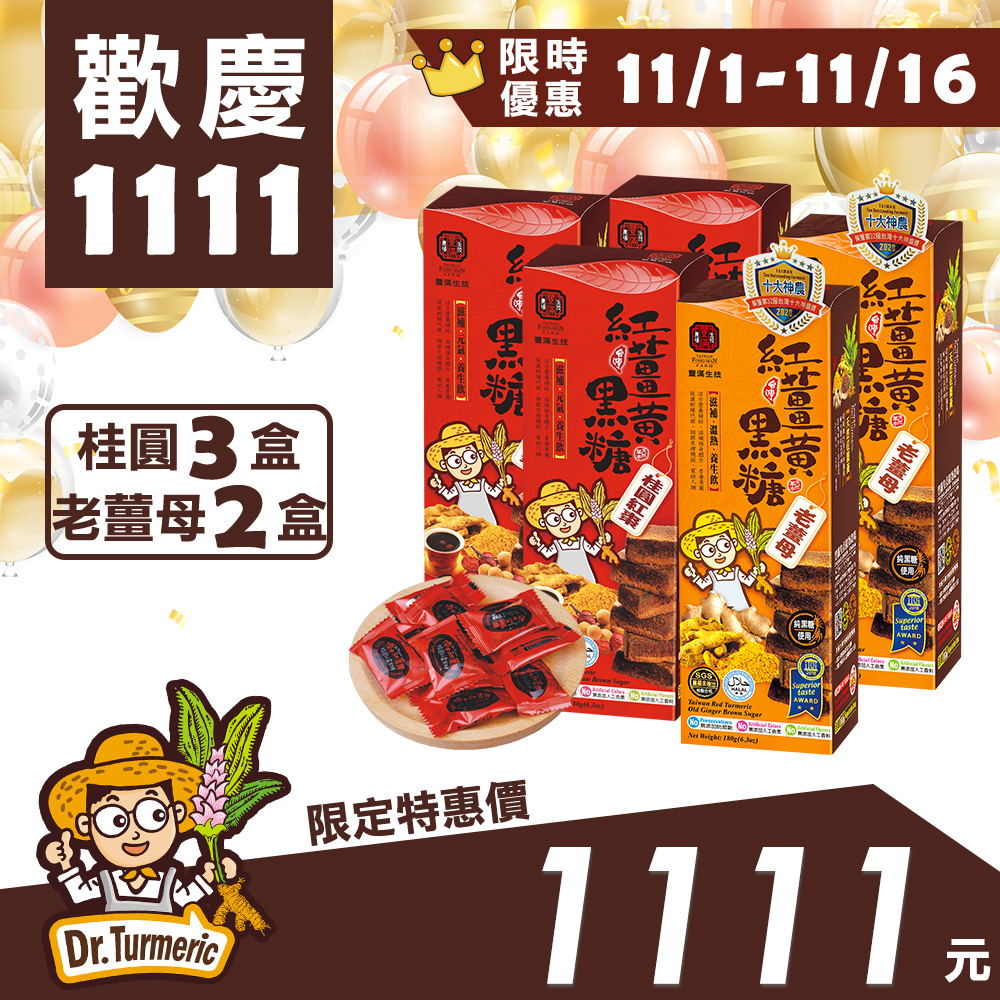 【雙11慶典】紅薑黃黑糖-桂圓紅棗(三盒)、老薑母(二盒)