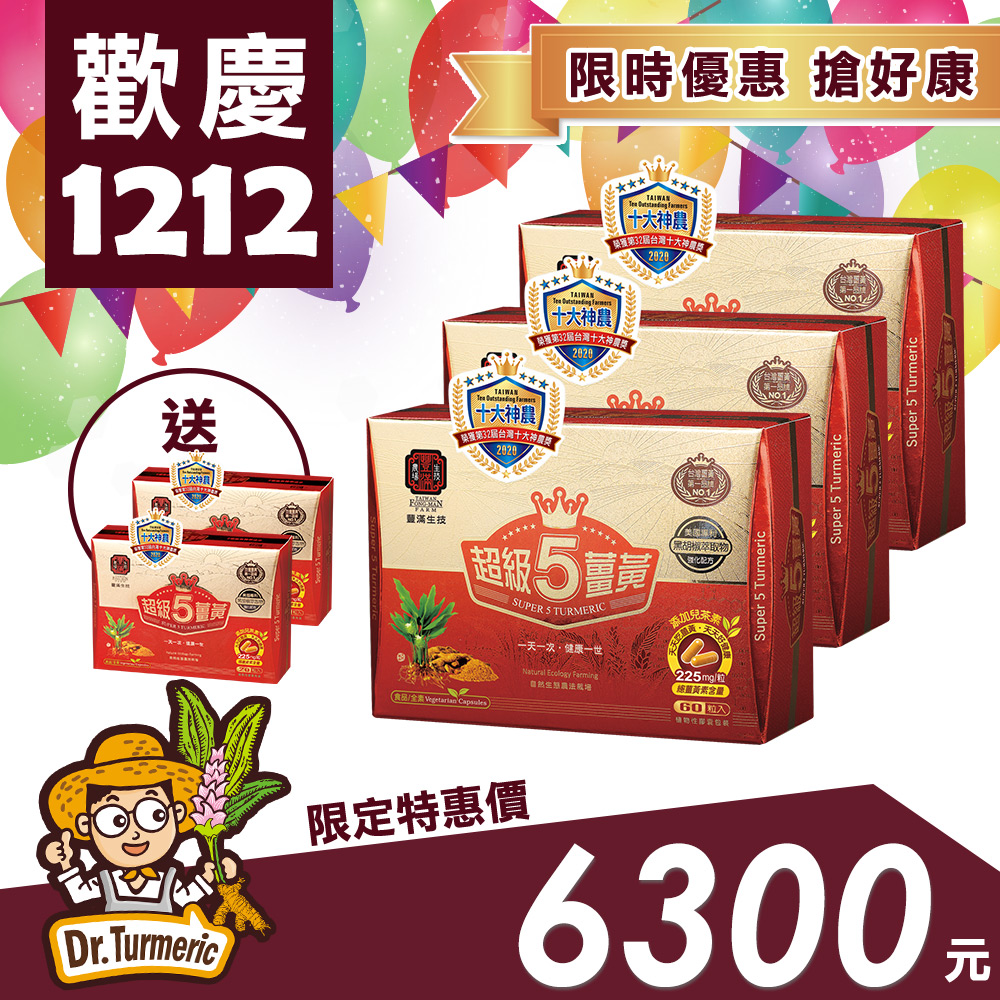 【歡慶1212】超級5薑黃膠囊3+2超值組