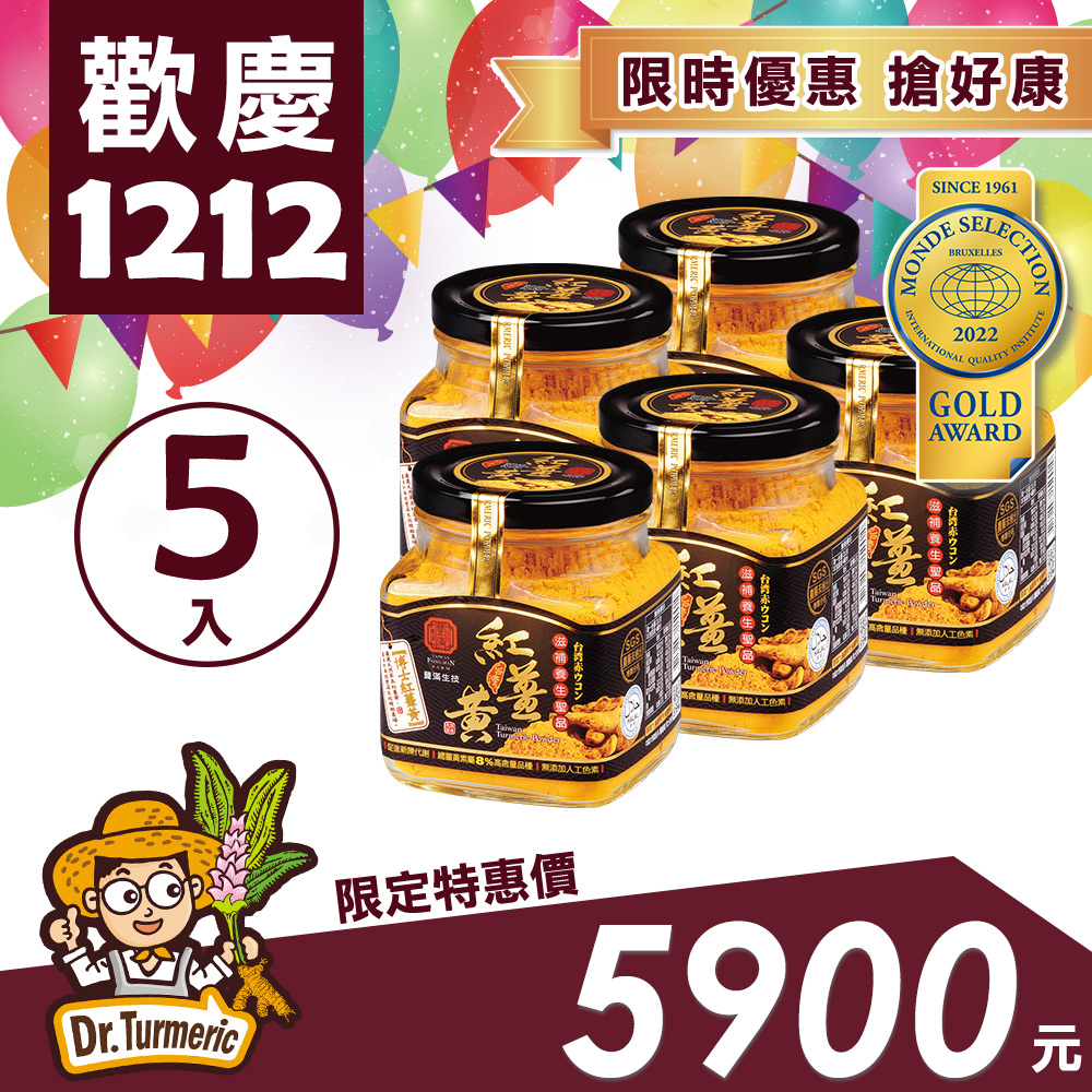 【歡慶1212】有機紅薑黃粉(120g)五入組