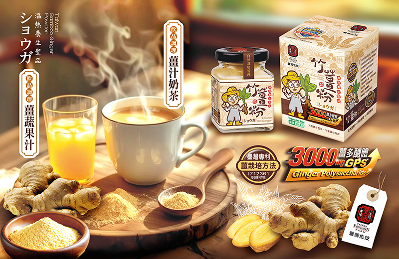 100%台灣高山金香竹薑,以自然友善農法栽培管理,含高量薑辣素、薑烯酚等保健成分,可沖泡為草本茶飲,如薑汁奶茶等,為天然滋補、活絡身體的秘密法寶!