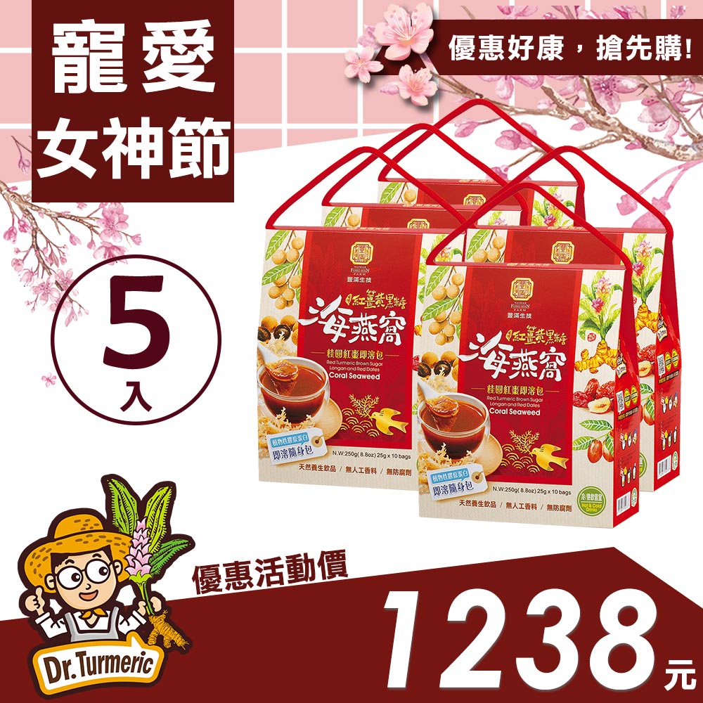 【竉愛女神】紅薑黃黑糖海燕窩/桂圓紅棗(即溶包)-白 (五盒入)
