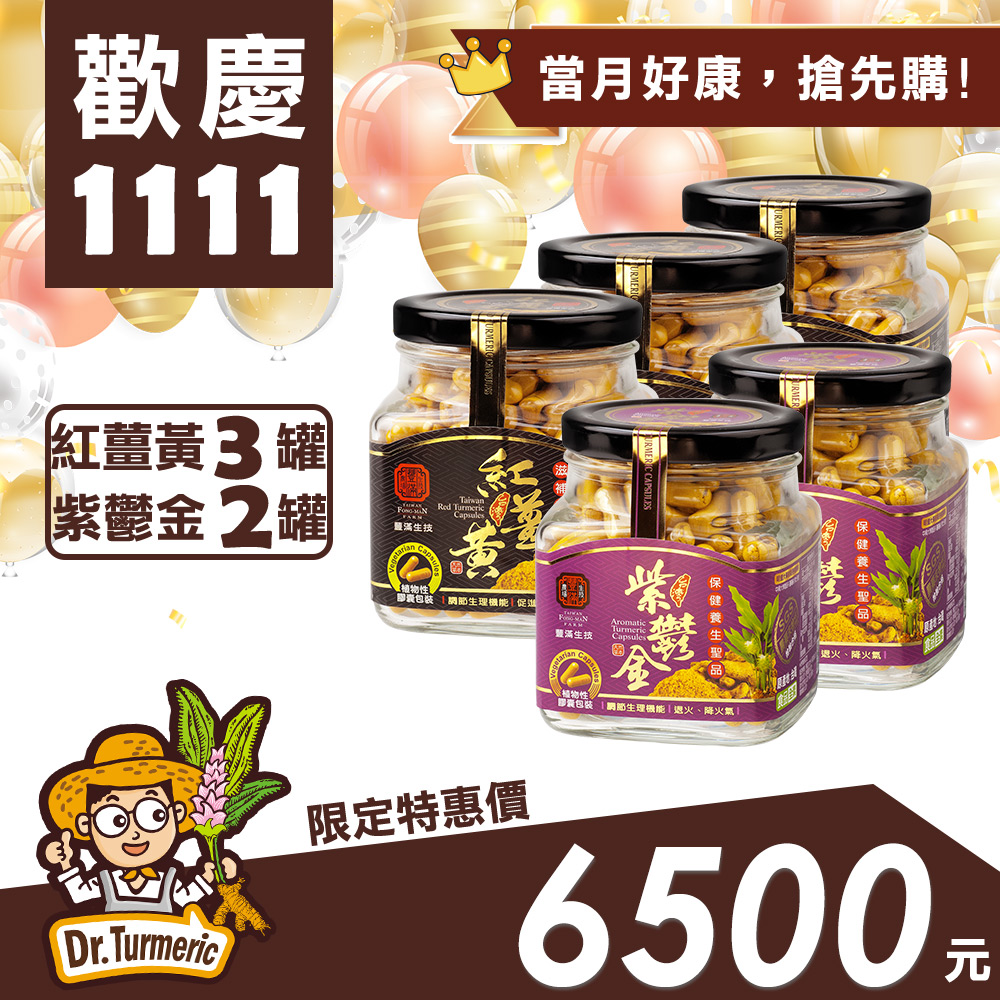 【雙11慶典】紅薑黃粉膠囊三瓶入、紫鬱金薑黃粉二瓶入